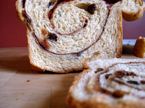 One of the greatest sandwiches I’ve ever eaten came from a small café and bakery in Cannon Beach, Oregon.  It was a turkey sandwich, replete with fresh vegetables and fortified with huge slices of avocado.  I loved the texture, I loved the flavor, but most of all, I loved the bread.  The bread that enveloped this sandwich was a soft, thick cut white bread with a large swirl of cinnamon spiraling through it.  When I initially saw the description of the sandwich and its bread I was dubious (cinnamon bread with a turkey and avocado sandwich?), but as soon as I took my first bite of the sandwich, all my suspicions went out the window.  The bread was sturdy enough to hold together a generous pile of fillings, but soft enough to make each and every bite of that sandwich an absolute treasure.  The cinnamon flavor in the bread was very subtle, and the swirl in which the cinnamon was contained had the same texture as the rest of the bread. The bread had a pillowy crust, a delicate chew, and it was the perfect savory pairing for a sandwich.
