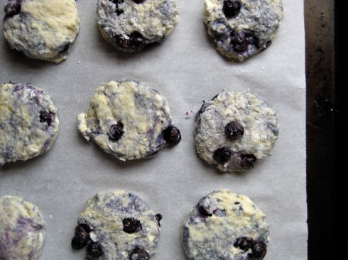 It was right about then that the oven timer went off, effectively causing the hamster wheel that is my brain to come to an abrupt stop. I took the biscuits out of the oven, admiring the lovely golden-hued tops that were studded with plump indigo berries.