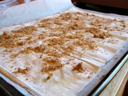 Again, it’s a process that will take you fifteen minutes, tops, and you certainly won’t be any worse off having taken a stab at it. In fact, at the risk of sounding like a complete loon, I actually enjoy the process of methodically layering phyllo. Perhaps it is the repetitive nature of a rather short task that produces immediately, visible results, but I find the motions rather soothing.