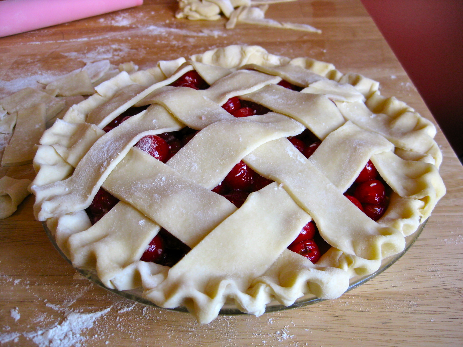 A delicious pie, with dough scraps aplenty