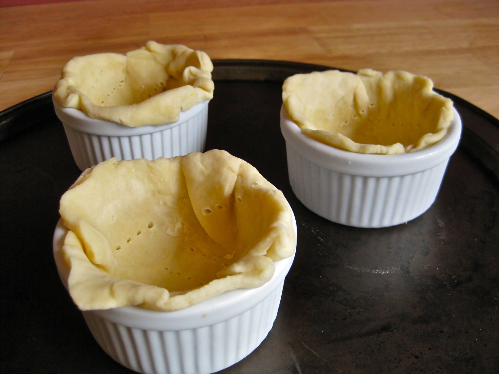Don’t want to eat a tiny pie right now? Prepare your tiny crusts in their tiny vessels, then cover them with foil and pop them into the freezer. When you are in the mood for a tiny pie, bake the frozen pie crusts at 400 degrees Fahrenheit for 25-30 minutes (until the edges have turned a dark golden brown), then cool and fill as desired. Frozen, unbaked pie crusts will keep in the freezer for up to 1 month.