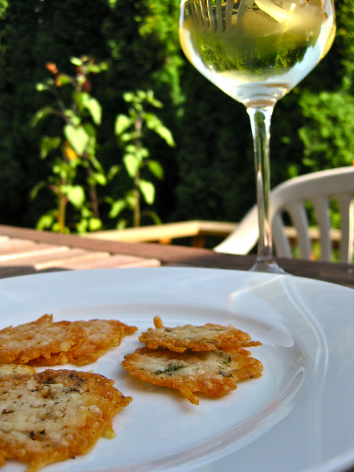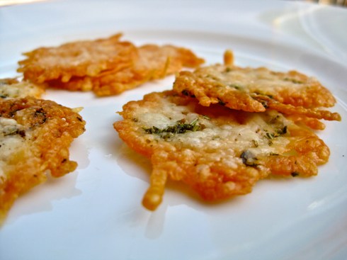 My favorite party trick, however, might just be the one I only recently discovered. Last week, after finishing off a small, precious package of delicate Parmesan crackers that was gifted to me by my cousin, I began to sniffle a little at the thought of no longer being able to nibble the crackers while enjoying a small splash of white wine as we relaxed in the garden each night. The crackers were absolutely delightful, you see, very light, pleasantly piquant, and the perfect item to pair with a little nightcap. Their savory secret lied in the fact that the crackers were made of nothing more than baked Parmesan cheese, a bit of knowledge I was privy to when I first received the crackers, but not really in full realization of until I ran out of them and almost immediately began to yearn for more.