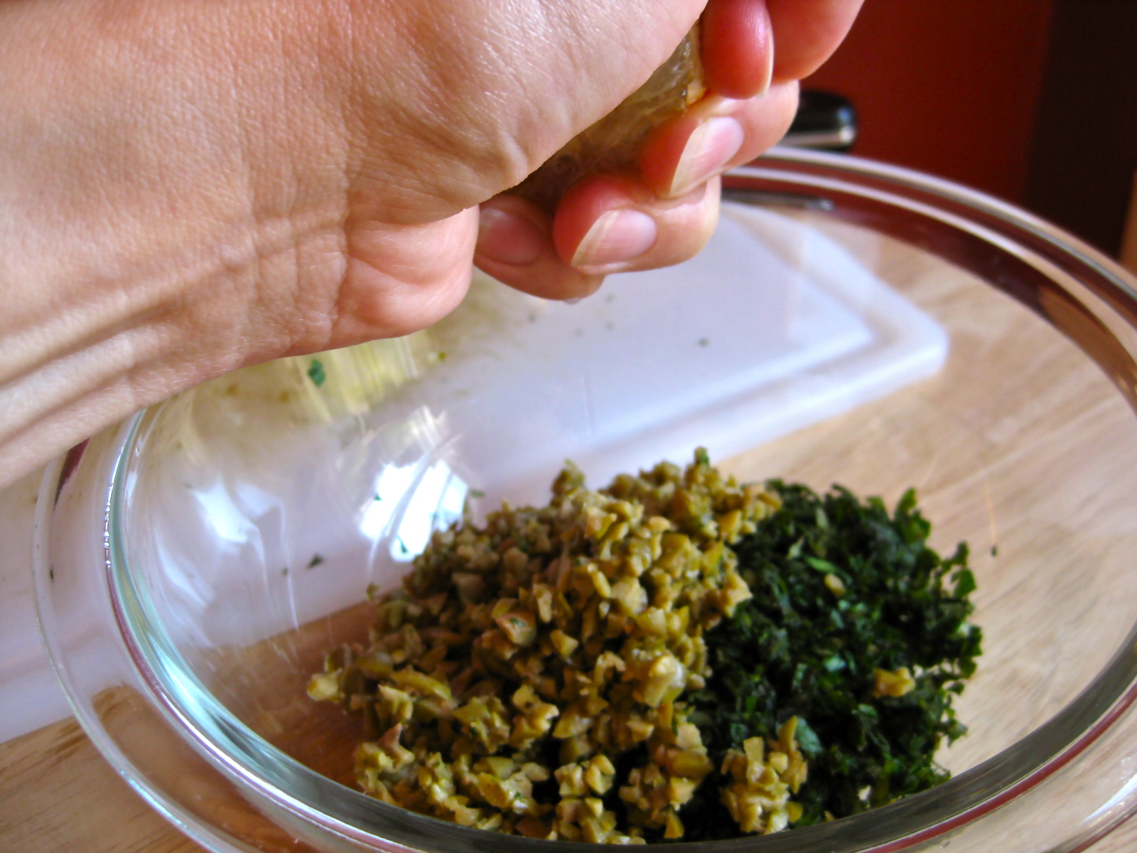 ¼ cup pitted chopped green olives