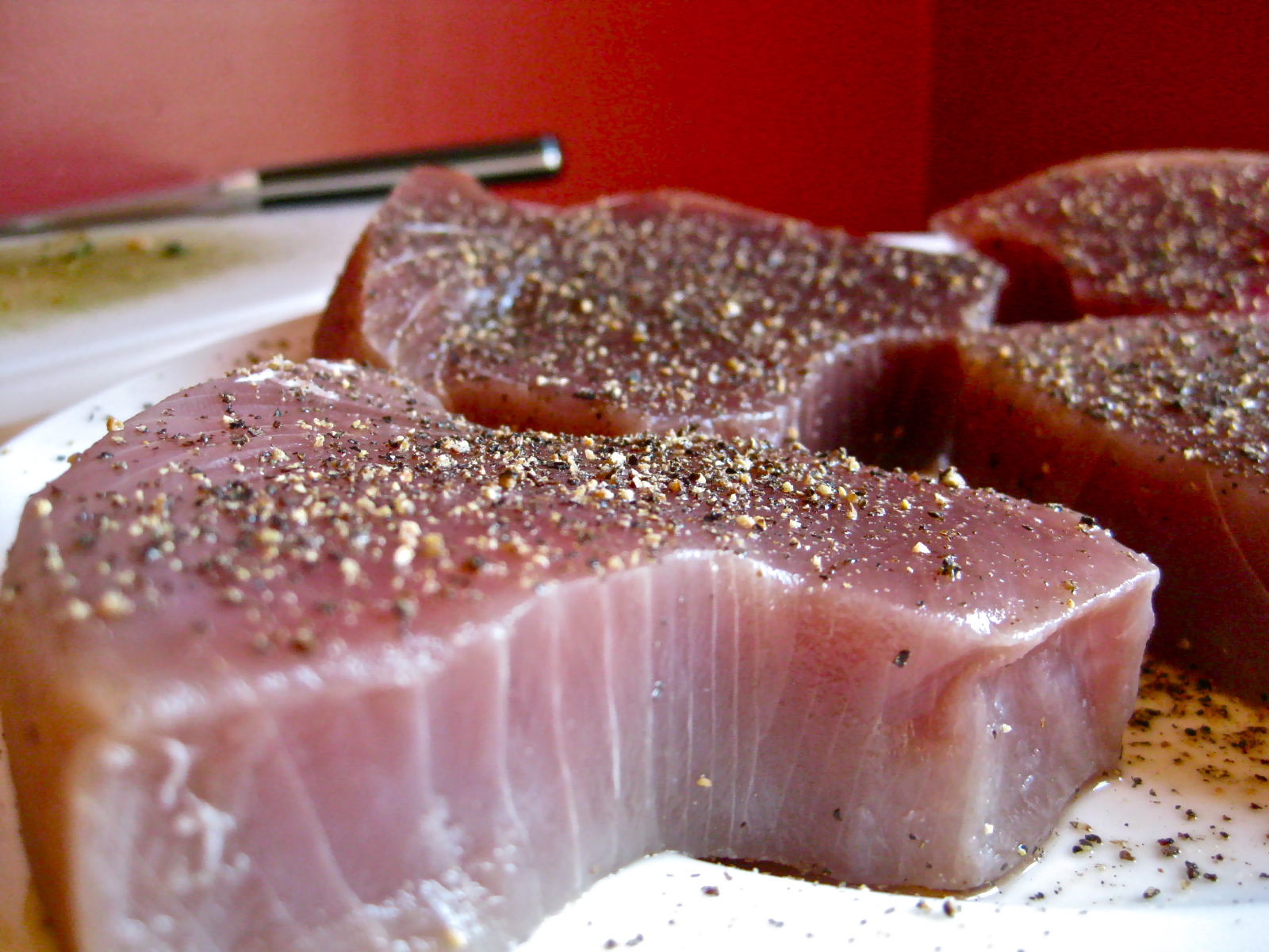 4 tuna steaks, rinsed then patted dry