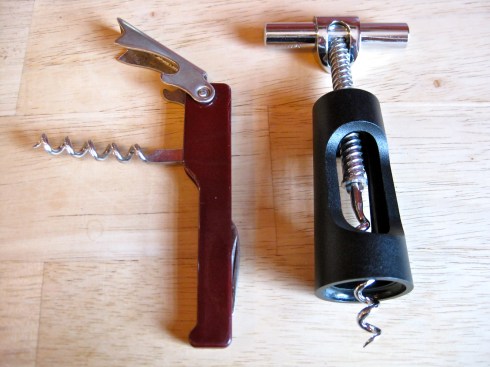 During all the years I was using my $5 corkscrew pictured above on the left, I was constantly being given bigger, fancier corkscrews by people who thought that I was perhaps clinging to my simple corkscrew out of a sense of duty or frugality (it wasn’t broken, so why replace it?).  Every corkscrew I received, I then tried, and many of them I actually liked.  The problem was, every single one of them—and I really to mean every single one—broke within a few months, or perhaps even a full year, of use.  The one with the wings on the side that leveraged the cork out of the bottle?  Broke.  The ultra-fancy one that had two different handles, a lever, and came with its own display case?  Broke.  The one that came with a special foil cutter and had the unfortunate look of a tool one would find in a dentist’s office?  Both items broke.  So, it was back to me and my simple corkscrew that sometimes broke stuff and made my wine a little more textured than I desired.