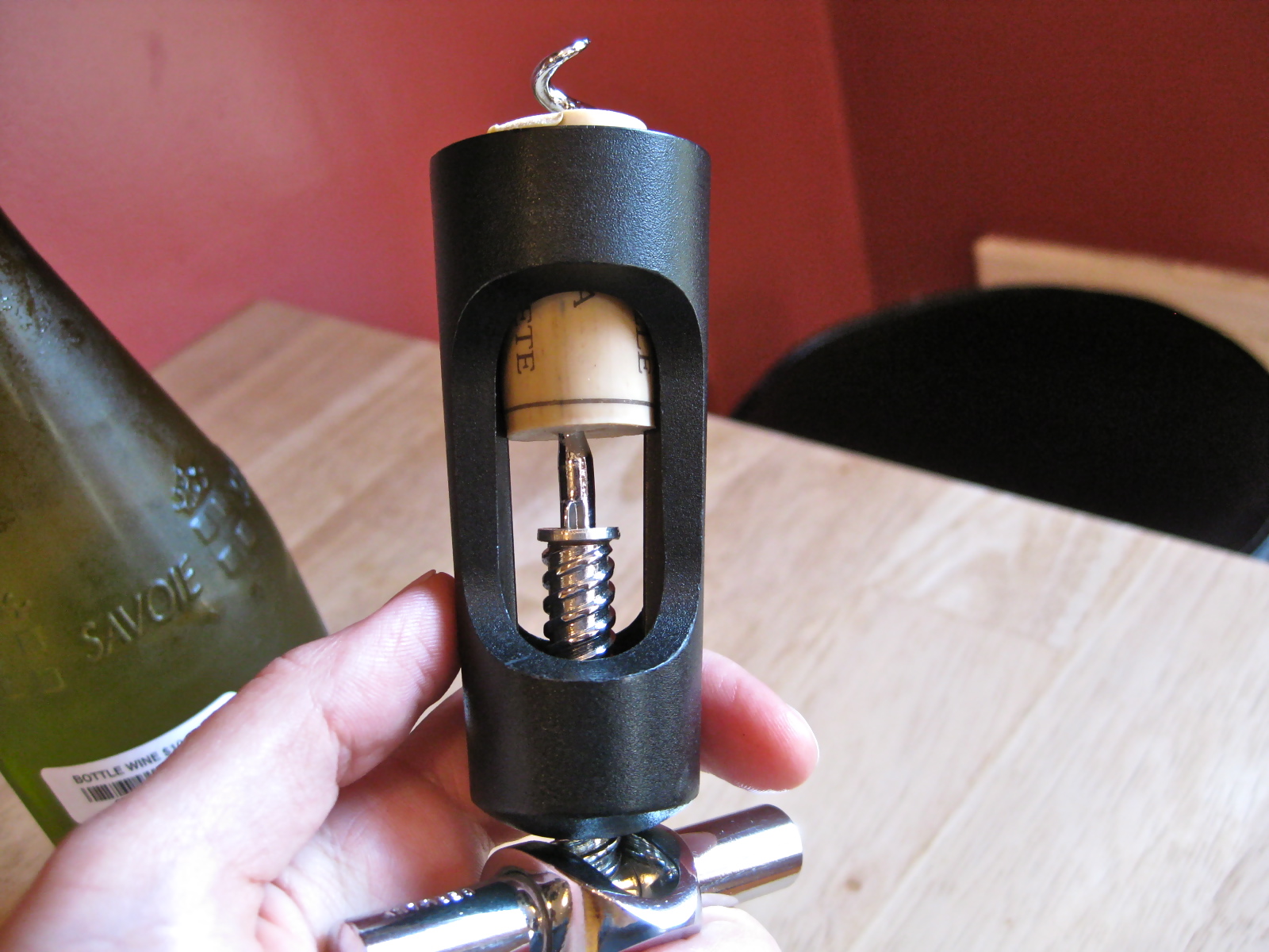 For years, when tasked with opening a bottle of wine, I used that bad boy on the left.  It’s compact, it’s fairly straightforward to use in terms of technique, and it’s highly durable.  The only problem I have ever had with it has arisen when encountering a bottle of wine with a particularly stubborn cork.  On more than one occasion, I have managed to break a cork in half, which, though certainly not the end of the world, is at the very least a mild annoyance.