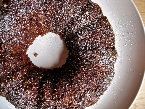 I made two of these over the weekend – one for a vegan friend’s going away party (where it was gobbled up by vegans and adamantly non-vegan types alike – and the second one for a small get-together that I hosted because a) there would be vegans in attendance, and b) I didn’t get to try the first one because it was a gift and I thought it wouldn’t look great if it showed up with a slice missing. Both got rave reviews. It’s moist and perfectly suited the fall weather we’ve been having.