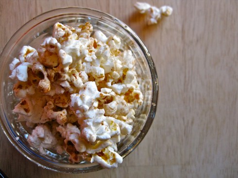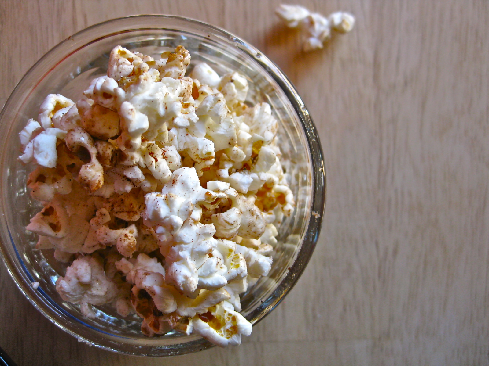 So, please allow me to introduce you to my new friend, kettle corn’s cousin, sweet and spicy popcorn. A tiny bit of cinnamon and nutmeg add a warm and savory touch to the taste of the lightly sweet and buttery popcorn, while the chipotle powder creeps in with a small punch of heat to keep every bite interesting. The flavor profile of this popcorn is simply a delight. There is a little bit of everything going at once, but not so much that it overwhelms your palette and exhausts your taste buds. Sometimes, because I am nothing if not super classy (what now?), I’ll pair this popcorn with a nice, crisp glass of white wine. And sometimes, because I am also a small child passing as an adult, I will eat this very combination of foods for dinner. Oops. I think I just killed the classy part.