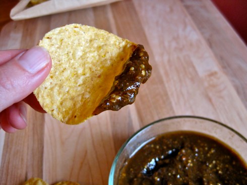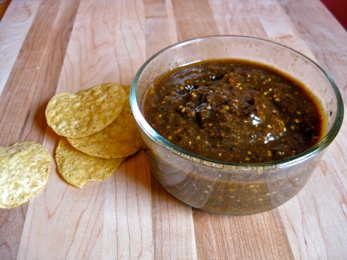 This salsa is a direct recipe from Rick Bayless, he of the encyclopedic knowledge of all things related to the cuisines of Mexico.  So embroiled in the specifics of the foods is Bayless, I admit that I am actually somewhat intimidated by a large chunk of his recipes.  I have to roast that thing for how long?  And then find fat from what animal?  And do WHAT with it?  That’s the part where I close the book and walk away, wondering for the tenth time that week if it’s possible to actually hurt yourself by eating too many corn tortillas.