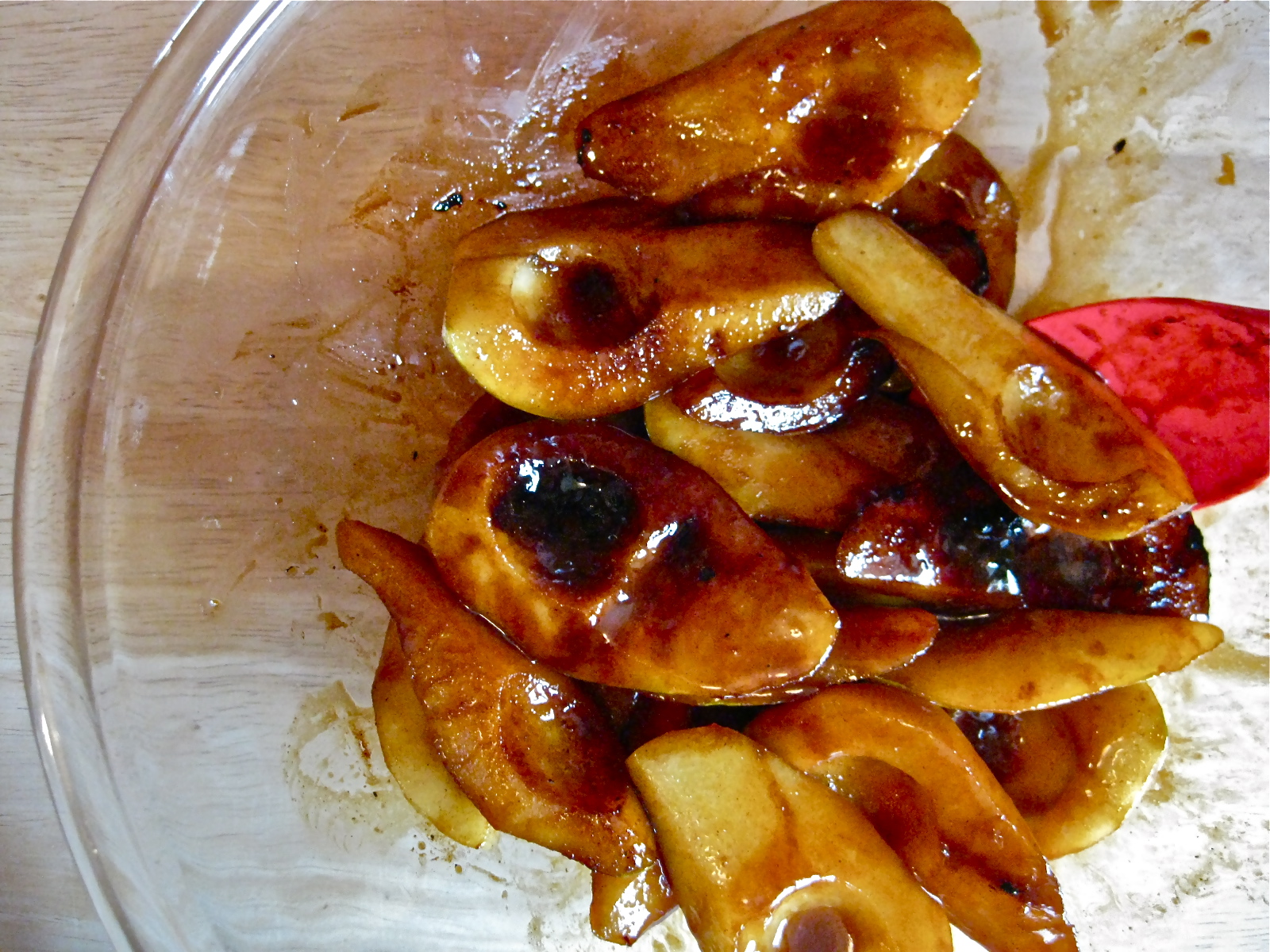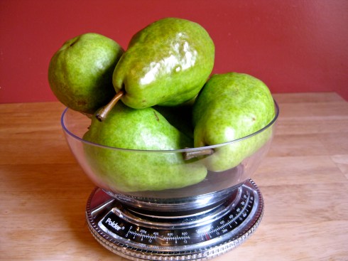 3 pounds just ripened pears (over-ripe pears will fall apart when cooked, so make sure your pears still have a bit of firmness to them), peeled, cored, and sliced into quarters