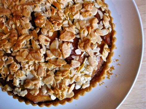 Yes, when I first made this tart, I lamented the fact that it was far, far too sweet for my tastes.  At first I couldn’t figure out why, because I was too focused on the tart’s other, more pleasing, qualities (like, for instance, the shot of lemon that wakes up every other flavor, or the small splash of cream that I added to the pear caramel to round everything out), but then, looking back on the recipe, and, you know, its name, it suddenly occurred to me that I had just made a tart topped with candied nuts.  So, that’s going to be sort of sweet.
