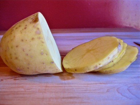 1 pound Yukon gold potatoes, which generally works out to 2 large potatoes