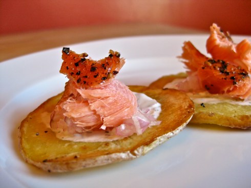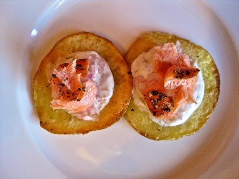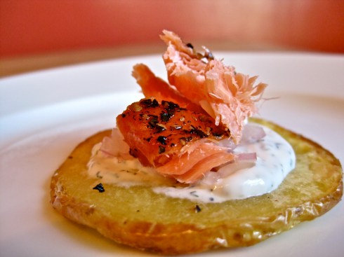 Smoked Salmon Canapés on Potato Crisps