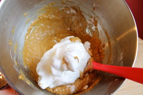 In a large bowl, sift together the flour, ginger, cinnamon, salt, baking soda, and baking powder. In a medium bowl, combine the egg yolks, sugar, molasses, milk, and melted butter, and beat until well combined. In a separate bowl, beat the egg whites until they form stiff peaks. Add the egg yolk mixture to the flour mixture, and stir just to combine. Add the egg whites to this mixture, gently folding until the whites are incorporated and the batter is light and airy.