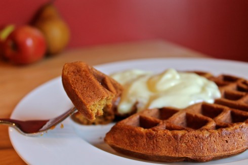 Even if I was still able to handle a nice long pour of maple syrup, I doubt I’d get the bottle near these waffles. The dark spices might play well with the syrup, but when paired with a scoop of cool lemon yogurt, everything really seems to come together in a more interesting and contrasting way. Also, because I am now apparently one of those people, I drastically reduced the sugar in these waffles, but you’d never be able to tell with their comforting scent of molasses and brown sugar. These waffles are a treat of the best sort, the type to start your day off right, sans fear of extended napping (unless, of course, your plans for the day already include a generous nap allowance, in which case I salute you and also, can I come over?).