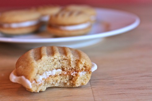 When cookies have cooled, spread a generous ½ teaspoon of filling between 2 cookies. I allowed my filling to sit for about 10 minutes, which allowed me more control over patting the filling evenly between the cookies. You may not be so fastidious.
