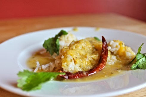 Changing up the game, however, comes this coconut milk dal from Naomi Duguid and Jeffrey Alford.  As simple as can be, it is, once again, a perfect dish from two people who really seem to have a rock solid grasp of flavors and spices, and how one can highlight the best of both by using ingredients that nudge one another towards a grand conclusion.  The coconut milk is an unexpected treat here, and not something I usually see in dal.  Duguid credits this dish as being more prominent in Southern India—it is actually something she remembers eating quite a bit in a Tamil restaurant—which makes sense, considering the common appearance of coconut and coconut milk in the dishes of Southern India, but not so much in the cuisine found in Northern India (where my family is from).   No matter its origin, this dal is a fantastic addition to any Indian meal, large or small, elaborate or simple.  I’ve taken to eating it with this new favorite cauliflower dish, and I think it would be a wonderful pairing with this delightful chicken biryani.  Really, you could just eat it over plain old basmati rice and it would be a staggeringly good meal.  I suggest you get right on it.