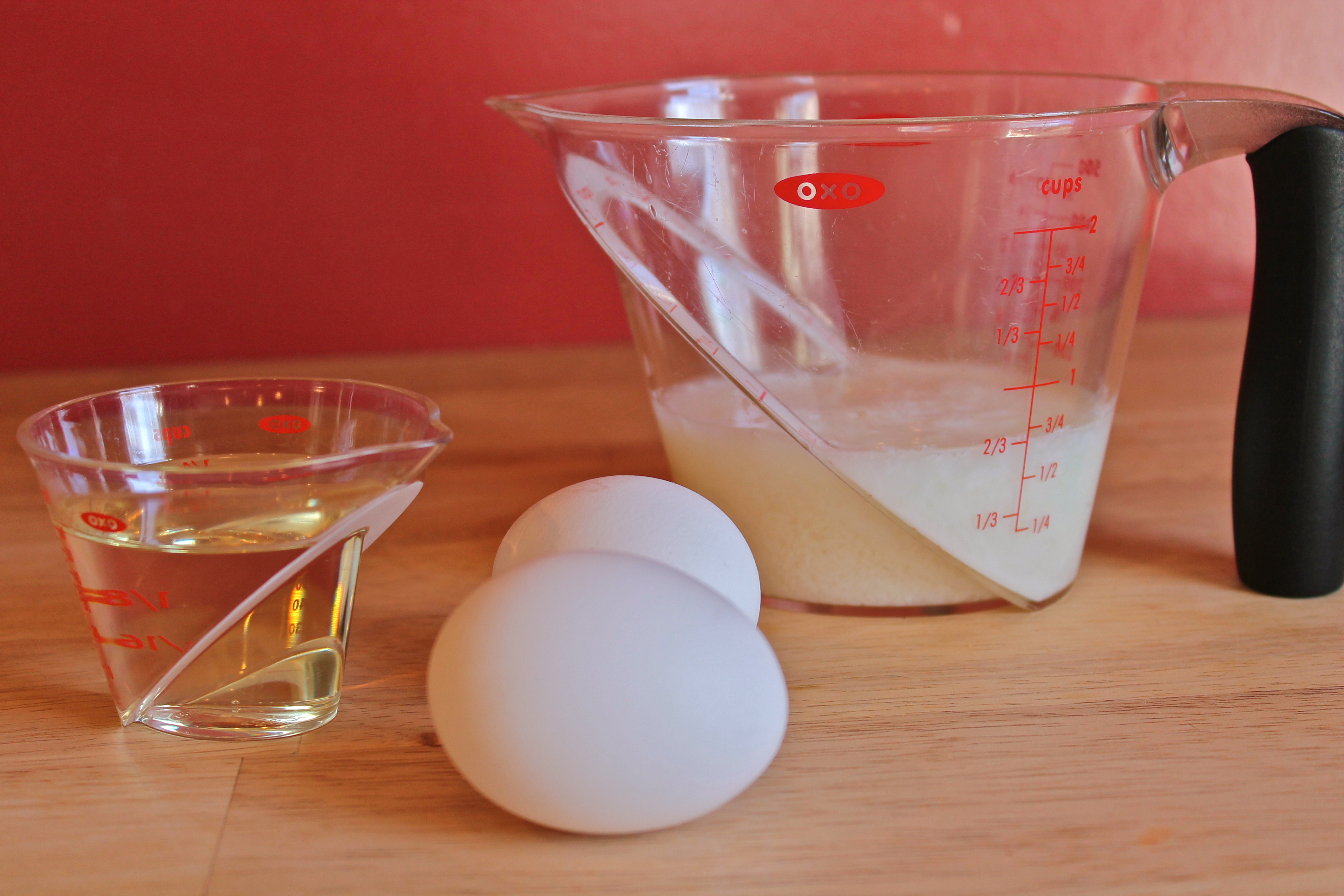 Separate one of the eggs, placing the yolk in a large bowl and the white in a smaller bowl. Add the chopped chocolate to the bowl with the egg white, mix to combine, then set aside. To the bowl with the egg yolk, add the second egg, buttermilk, oil and vanilla. Beat with a fork for at least 1 minute, until well blended. In a separate bowl, sift together the dry ingredients and set aside.