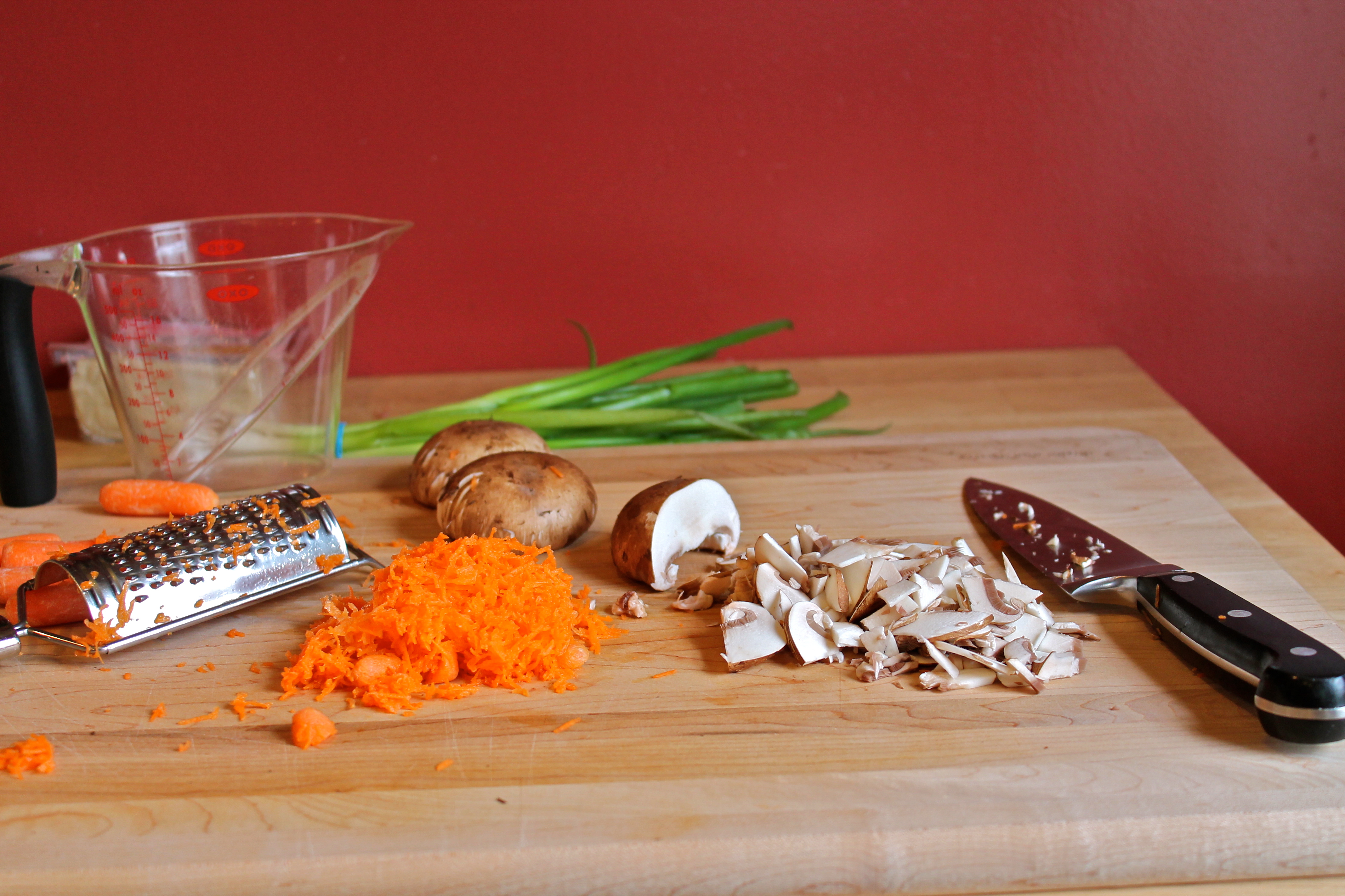 1 cup finely chopped mushrooms (the original recipe called for shiitake or oyster mushrooms, but I used much more reasonably-priced cremini mushrooms and they were great)