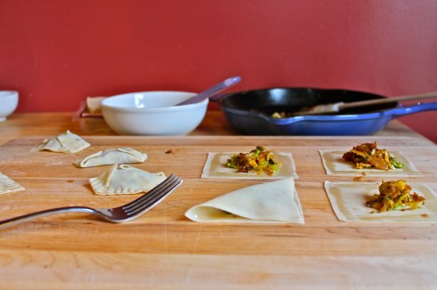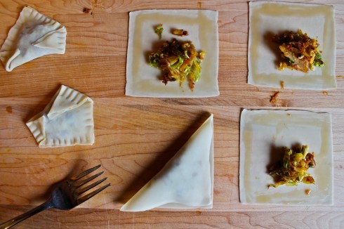 Maybe it’s because I am soothed by being in the kitchen, but the task of filling or folding or forming dozens of tiny little foodstuffs has never bothered me. Truth be told, it can sometimes bother my back and neck (because no matter how much I mentally enjoy the repetitive motion of forming little cookies, standing upright with my head pointed down at a work surface is not the most forgiving posture), but that’s small price to pay for feeling so mentally sound at the end of a long marathon of cooking or baking.