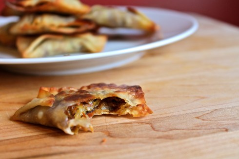 Most importantly, however, is the fact that waiting for you at the end of your cooking trials is something delicious to eat. When I made these delightful little wontons, filled with carrots, mushrooms, and cabbage, and perfectly seasoned with ginger and mirin, I took that thought to heart. No, really. To test the recipe, I made a half batch of crispy, crunchy wontons, and then, when they emerged from the oven, I proceeded to then eat them all. Every single last one of them. At first I felt sort of sheepish about what I had done, but I soon got over it. They were delicious, I took the time to make them, so why shouldn’t I get to enjoy them? Up until now, however, my husband and son were unaware of what they missed when I made these, because I never told them that I made them. It was a stealth recipe test. “Was” being the operative word here, because now, having admitted to the world (and my husband) what I did, I must make amends and whip up another batch of wontons for everyone. And I do not mind one bit.
