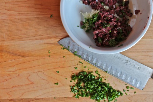 This sandwich has a lot in common with a traditional muffalleta sandwich, though the tapenade in this sandwich is decidedly less loud than the standard olive salad found in a muffaletta.  This sandwich also lacks the selection of meats found in a muffaletta, though you can certainly swap out a variety of meats depending on your tastes and desires.  One step that I find is crucial in making this sandwich really sing is the rest time.  Wrapping your sandwich, either in slices or as one whole loaf, and allowing it to rest in the refrigerator for a bit really makes the flavors meld together and create a nearly perfect finished product that is worthy of the Sandwich Hall of Fame (is that not a real thing?  I think that should be a real thing).