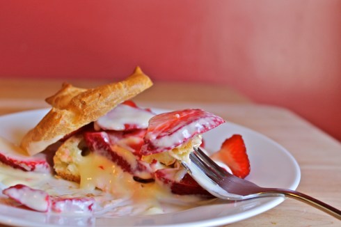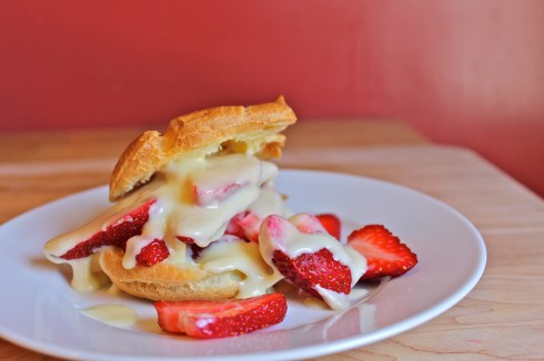It was that exact lightness that led me to this riff on strawberry shortcake that was a bit less dense than the usual (and perfectly delightful) offering of a buttery biscuit topped with slices of berries.  When pastry is the topic at hand, you can’t get any lighter than a classic pâte à choux, and as soon as I envisioned a plate of airy cream puffs drizzled with tart lemon cream and piled high with ripe strawberries, there was no going back.  Unless, of course, you count going back for seconds, which I most certainly did.