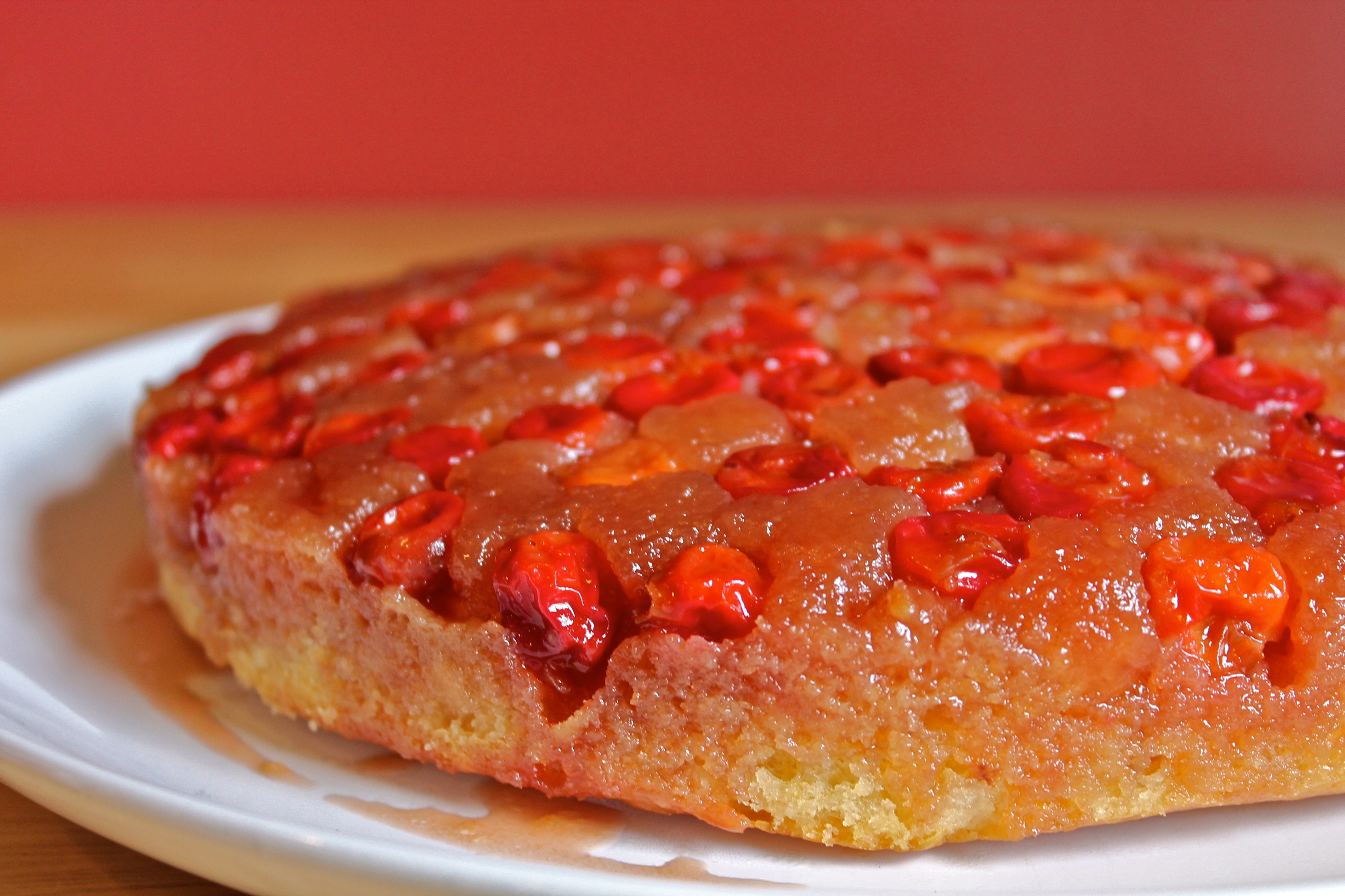OMG this looks amazing! I only wish I had a stash of sour cherries stashed away in my freezer. I’m not a huge fan of pineapple upside down cake because it’s often too sweet and the cake is typically either too heavy or too airy and flavorless to really deal with all that sweet. This looks like a delicious balance of sweet, tart, flavorfulness. I’m going to have to put my name on the list for a small portion of the cherry crop from H&J’s tree.