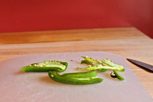 1 or 2 fresh jalapeños (depending on how spicy you want your salsa, though I find that grilling the jalapeños greatly tempers their heat—I used 1 jalapeño, but I wished I had used 2), sliced in half lengthwise, seeds and ribs removed (or, for even more heat, set aside the seeds and add them in later when everything gets mixed in together)