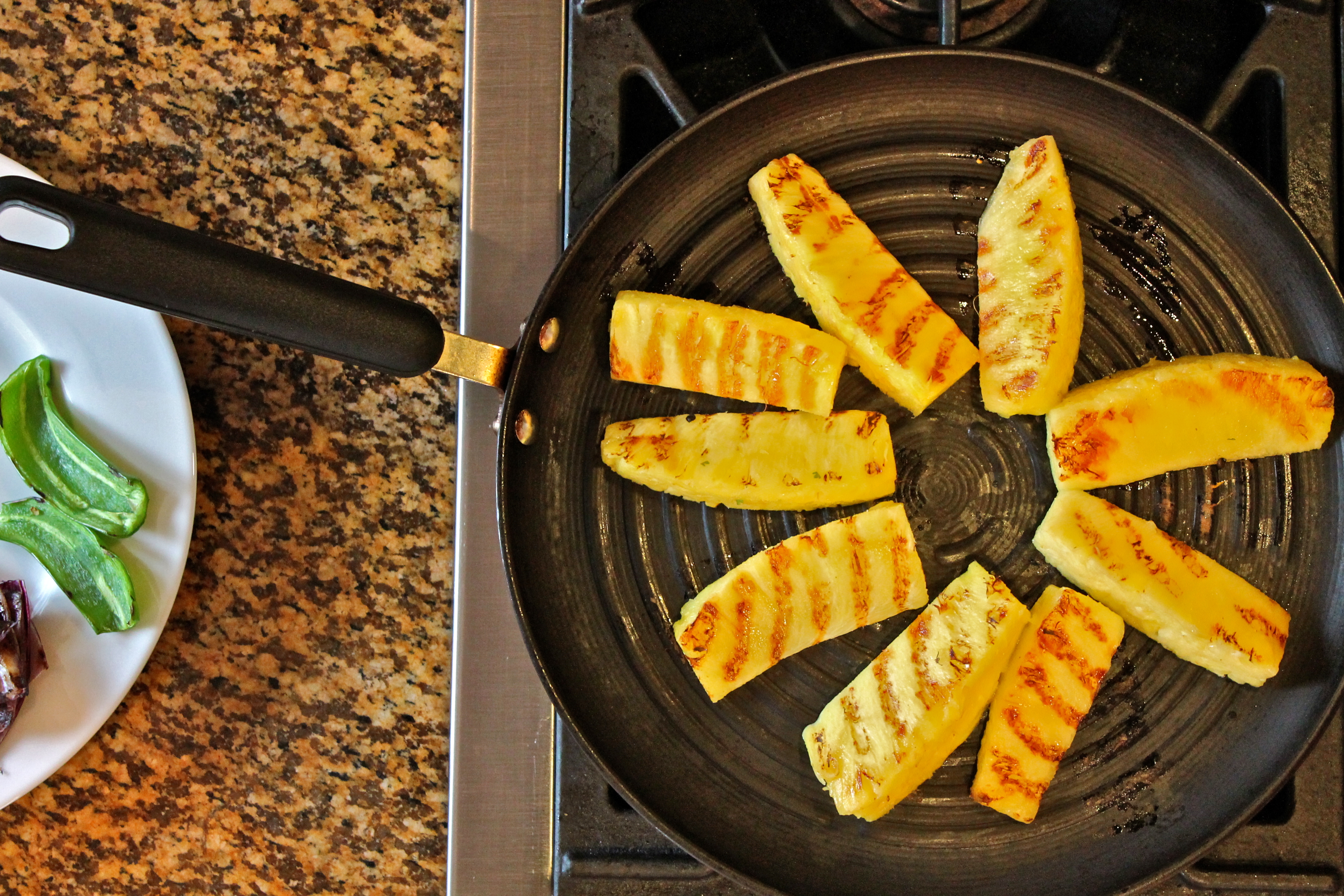 I wonder what would happen if I also grilled the jalapeño? And these onions? Hey, look—I just spotted the bread on the counter and, man, doesn’t a sandwich sound great right about now? I know, I’ll grill everything! Fish, pineapple, jalapeño, onions, bread—everything!