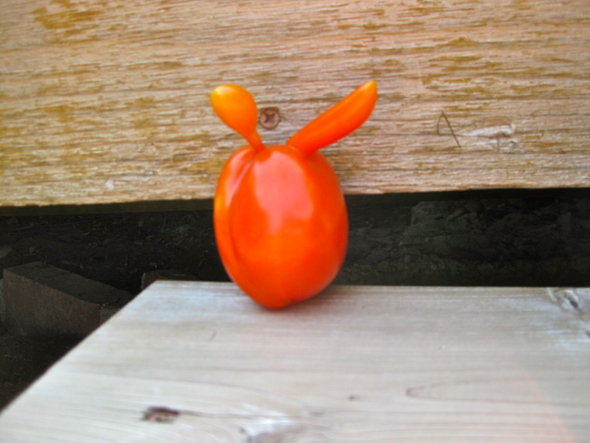 We saved the tomato for as long as we could. Eventually it began to look a bit wrinkly, so we had to put it out of its misery. We saved the ears for last, as it seemed only fitting.