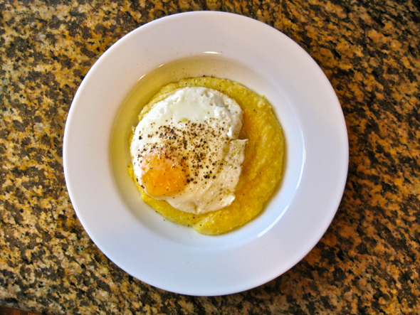 This is one of my favorite breakfasts (soft fried egg on soft polenta):