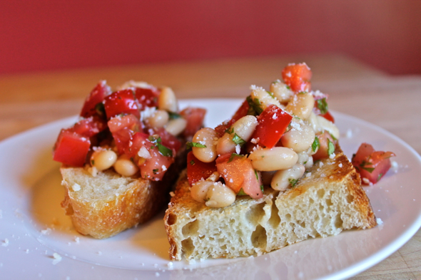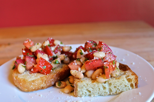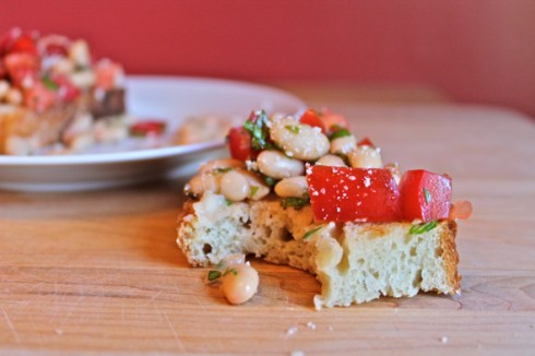 Gorgeous! I will keep this idea of adding white beans to bruschetta in mind the next time I want to have ONLY(/mostly) bruschetta for dinner, but also fill up on a little protein and not just bread. Yum.