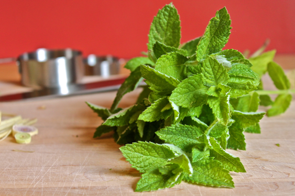 While in the thick of yard work, I decided that I needed to use up some of our garden’s mint. Immediately, my thoughts turned to lemongrass, mint, ginger, and the spicy kick of chiles. Taking a cue from my favorite Indian kebabs, I decided to feature my creation in the form of small patties, browned until just crisp on the outside, but still tender in the middle.