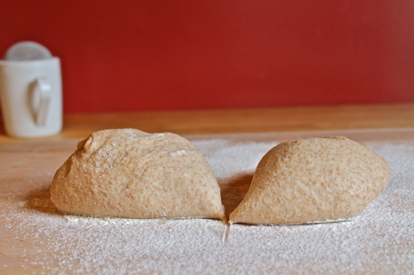 Form the dough into a ball, then place in a greased bowl to rise. Make sure that every part of the dough gets greased at least a little bit, lest it stick to the bowl as it rises. Cover the bowl with plastic wrap, a large lid, or a moist towel, and allow to rise at room temperature until doubled in size, about 1 hour to 1.5 hours.