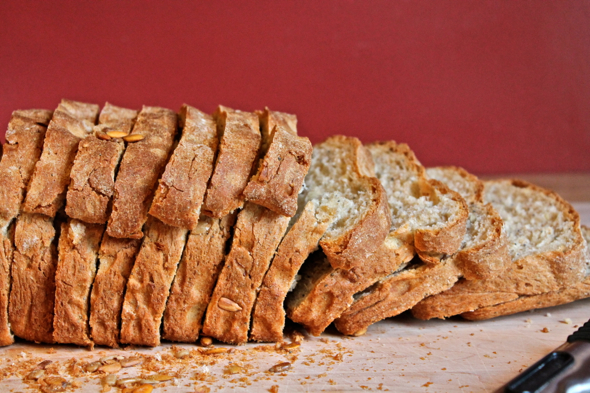 Packed with every type of seed I could find in the house, this is a bread for the ages. It is great for sandwiches, perfect as toast, and it will fast become your best friend if swiped with a touch of salted butter and drizzled with a wisp of honey.