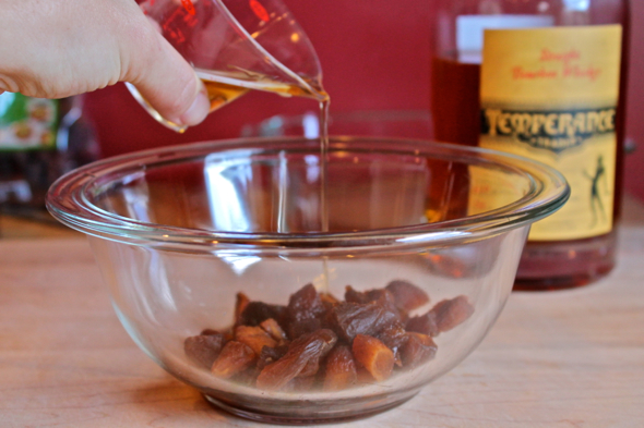 In a small bowl, combine dried apricots and bourbon. Toss to combine, then allow to soak for at least 20 minutes, tossing frequently to make sure the bourbon reaches every bit of the apricots.