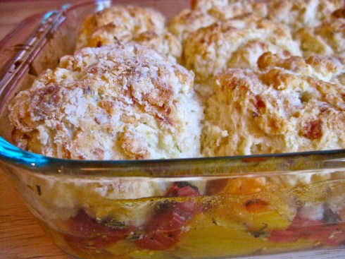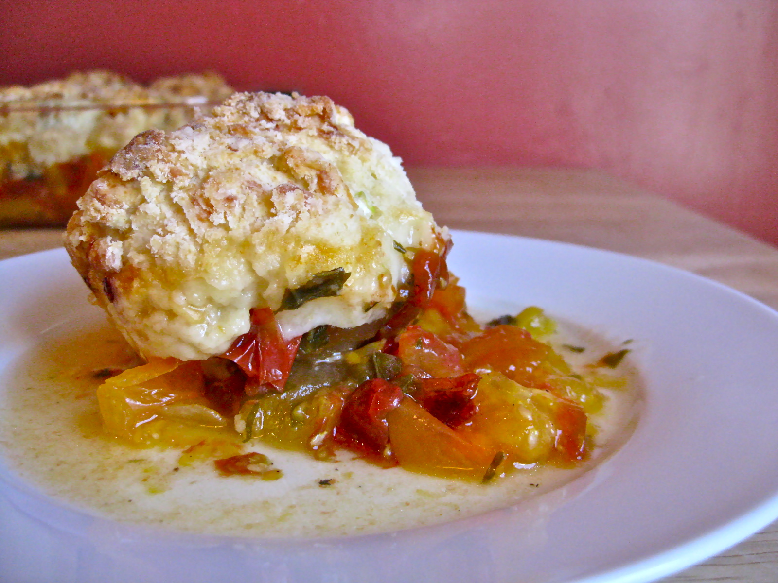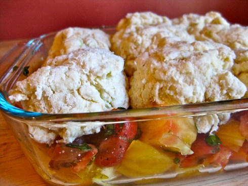 Heirloom Tomato Cobbler with Cheddar and Scallion Biscuit Topping