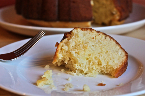 Baked in tiny little pans (thanks again, Corinna!), the cakes, unburdened by an excess of batter, turned out perfectly. The key? Knowing your pans. Though you may want to pour all of this cake’s batter into one smallish-yet-tallish pan, don’t do it. Almond paste behaves very differently than flour when it bakes, and this cake contains no leavening agent to aid in its rise. A taller pan will only bring you grief in the form of an underdone or collapsed cake. My experience has shown that an 8-inch pan works beautifully if baking a single cake, or, if you are in the mood for making several cakes at once, these cakes turn out wonderfully when baked in tiny little molds. The final product here is just spectacular, with the unmistakable flavor of almond essence mingling with the freshness of lemon zest and just the tiniest touch of bourbon in the vanilla bean glaze. The crumb is light, the hue is nothing short of gorgeous, and, at long last, everything about it is just right.