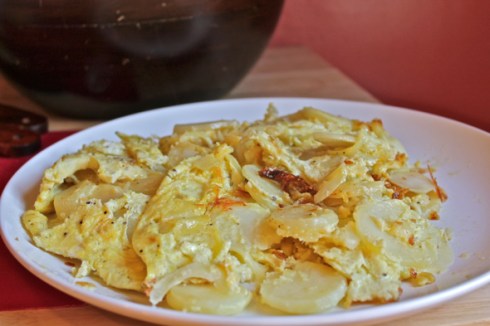 This tortilla de patatas, though delicious, did not unmold as it should have: