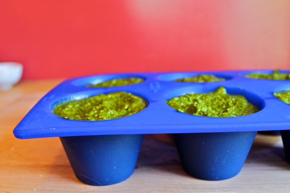 This pesto is made from basil, spinach, arugula, and mint. It is waiting to be frozen after this year’s garden harvest pesto-fest: