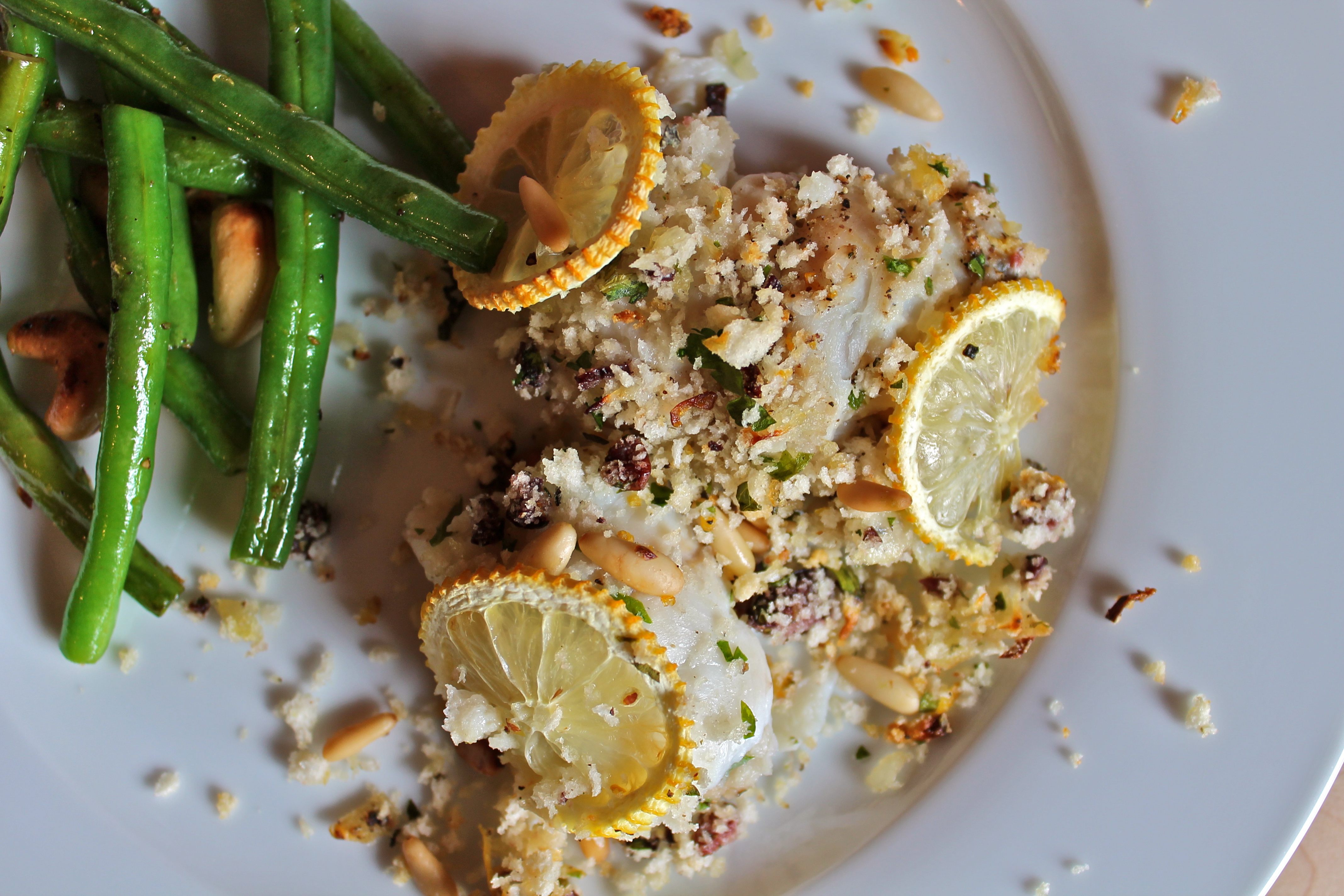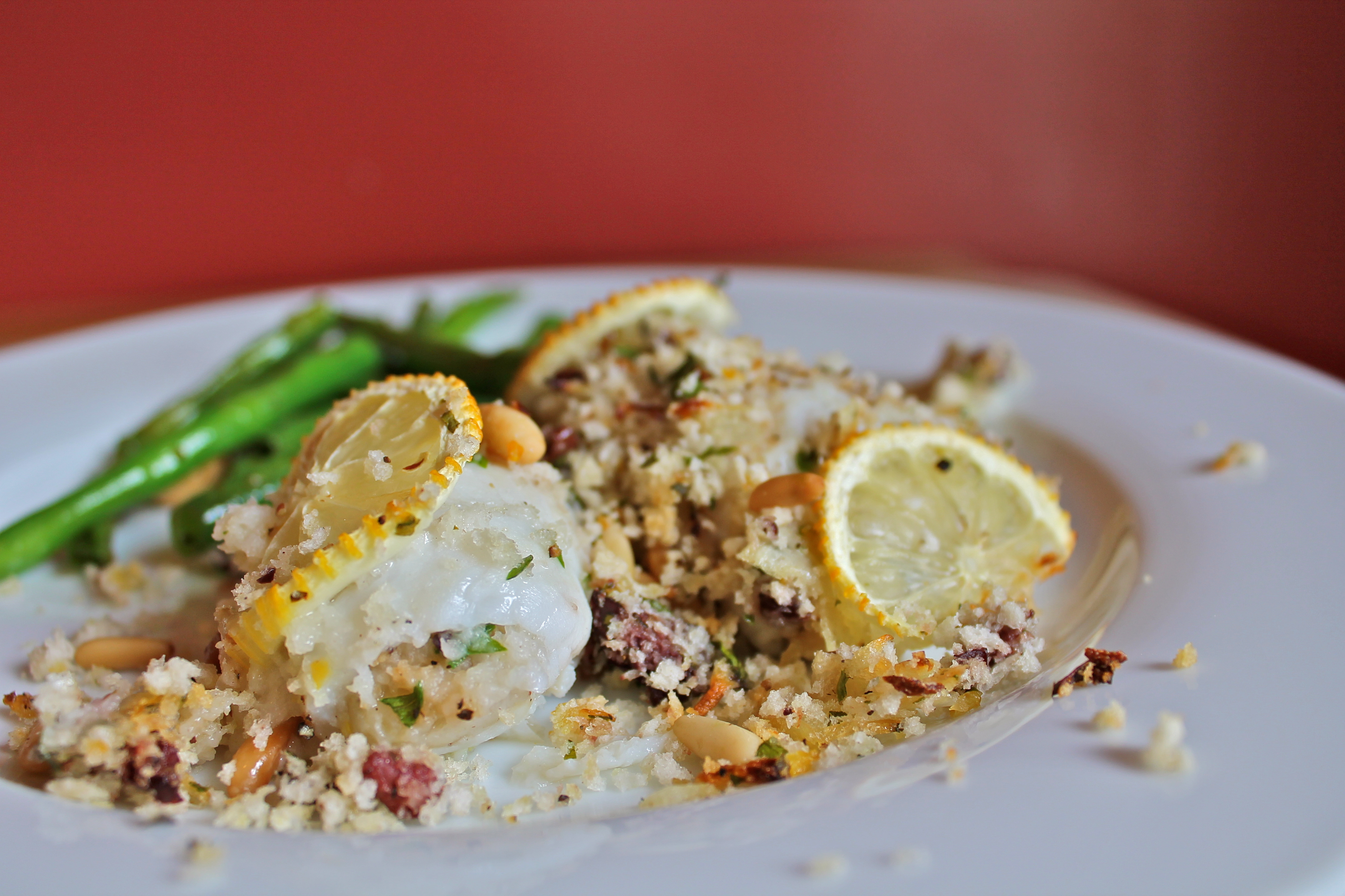 My inspiration dish is this wonderful and simple panko-crusted sole dinner that is a summer staple for us. Though I like it a great deal, I have definitely been feeling as though I could stand to see this fish presented in a different way. Taking cues from the panko and lemon I normally use in the dish, I grabbed an onion, some herbs, and an almost empty jar of Kalamata olives, and, with no real end point in mind, started to fiddle around. The end result, so varied in texture and flavors, with great zing from the herbs and lemon and a wonderful burst of fruitiness and saltiness from the olives, was a delight. Though I am sure that most of my meal reformations will not go as smoothly as this one, I can at least squeeze a bit of comfort out of knowing that my experiment is not one of total lunacy. I managed to make at least one standard meal into something new and appealing, which, if nothing else, managed to feed not only us, but also my creative confidence.