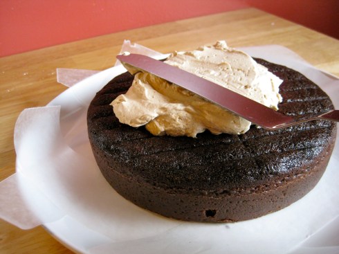 A few months ago, I made a bunch of cakes for a friend’s Kickstarter campaign. To me, this was a task on par with that of an artist being commissioned to paint a fine portrait. I took it very, very seriously. I bought bakery boxes in which to present the cakes. I made house calls to each and every cake recipient, making sure to describe, in fine detail, the nuances of not only the cakes, but also their frostings and/or garnishes. I shaved chocolate to decorate the cakes, I made special cardboard cake stands on which to sit each cake in its box, and then I hand-stamped my name, along with the name of this very website, onto each cake box. Like I said, I took my task very, very seriously. Behold:
