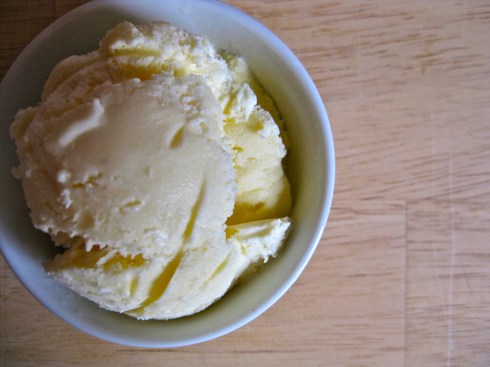 As I was unscrewing the cap to the bottle of extract, I watched the ice cream folding and turning over itself, its lovely yellow hue exaggerating the ribbon-like waves that followed the dasher with each rotation. That ice cream sure is a lovely color, I thought to myself. Then I paused, placing the bottle of ginger extract on the counter. I stopped the machine, removed the lid, and plunged a spoon into the fresh ice cream. The taste was magical. It was fantastically smooth, unbelievably rich, and the ginger came across as a bright flash that cut through the soft cloud of creaminess.