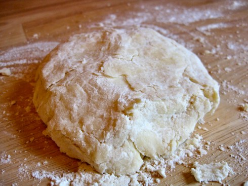Remove disk of dough from plastic wrap, and place on a lightly floured surface. Lightly sprinkle the top of the disk with flour. Using a rolling pin, gently but firmly roll the dough into a 12-inch circle. Roll from the middle towards the edges, rotating the dough as you roll.