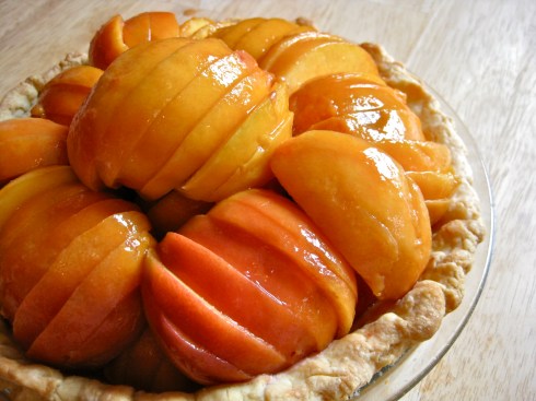 Generously brush the peaches with the cooled peach puree, drizzling the puree into any large gaps in between the peaches. Serve immediately, or refrigerate until ready to serve. Refrigerate any leftover pie.