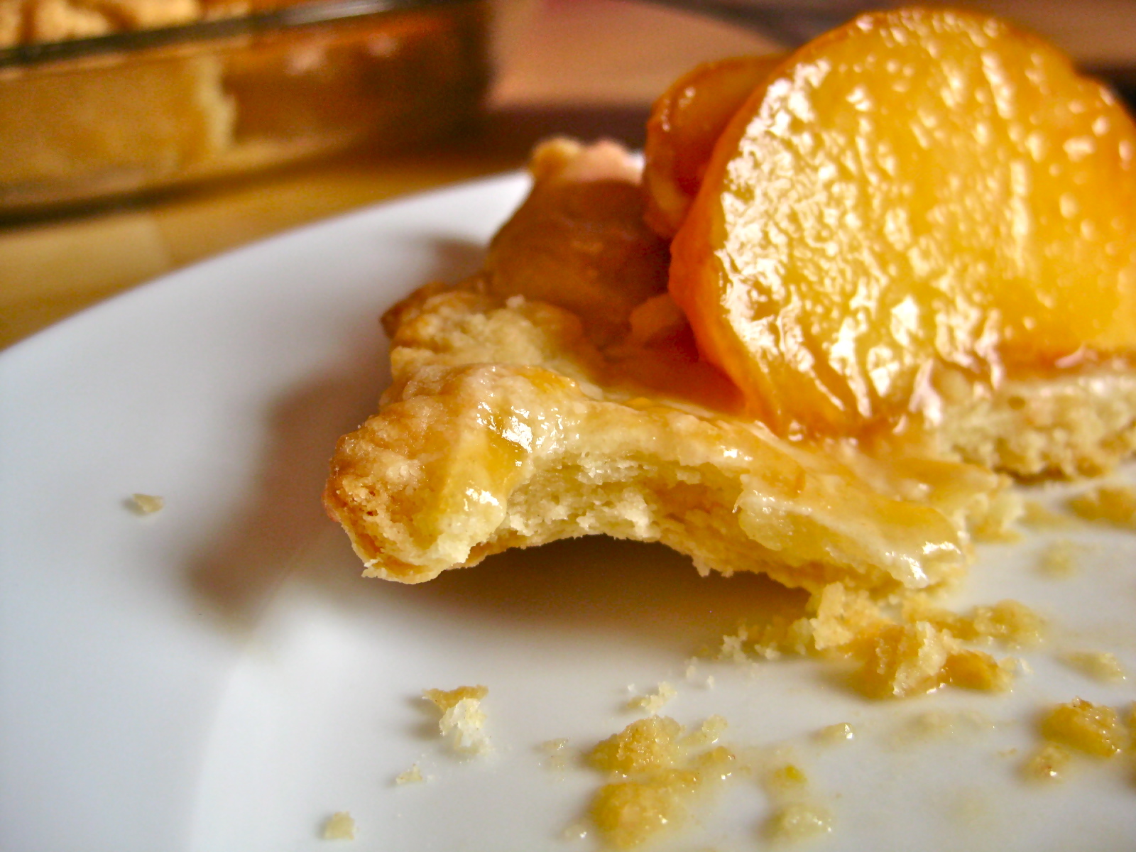 The peaches in this pie, while beautiful and delicious, will start to lose their blush very quickly as soon their flesh is exposed to air. Fortunately, the slight browning of the fruit will not alter the fruit’s flavor in any way.