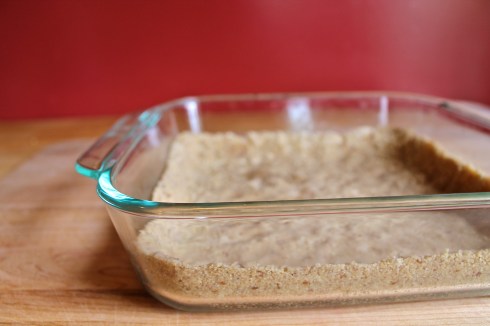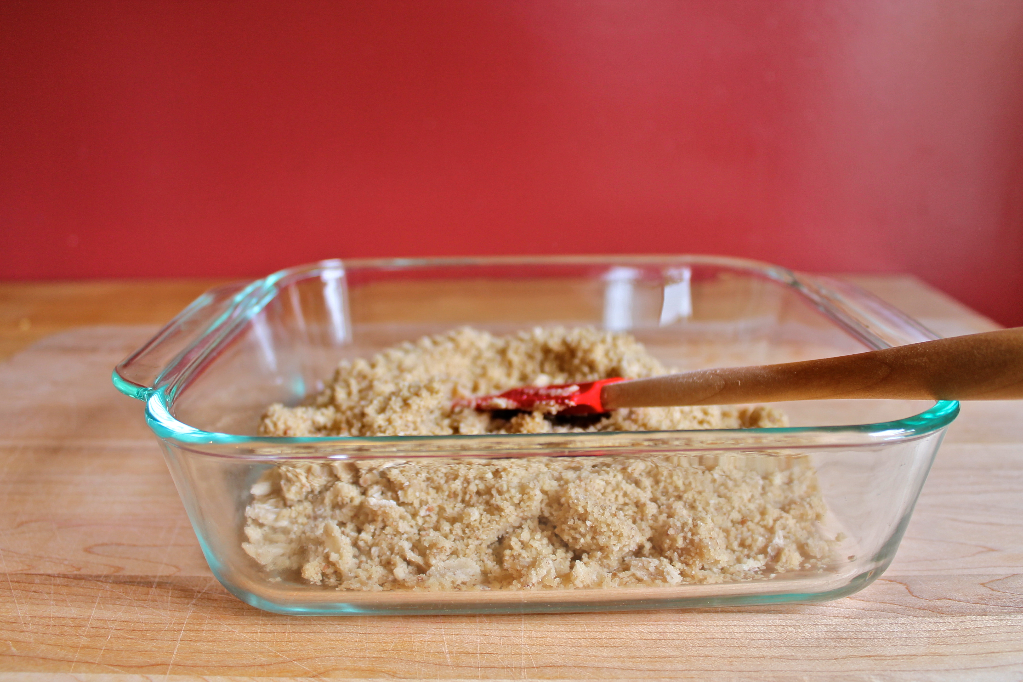 Preheat oven to 325 degrees Fahrenheit. Lightly butter the bottom and sides of an 8” by 8” square baking pan.