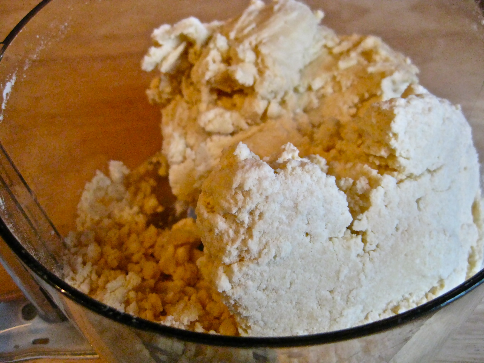 Place the flour in the bowl of a food processor, or in a large bowl. Cut the butter into 1-inch pieces, then scatter over the flour. If using a food processor, pulse the mixture briefly until it forms into large crumbs and some of the pieces of butter remain pea-sized. If making the dough by hand, cut the butter into the dough using a pastry cutter. You will want the dough to have the same crumb-like look with some large pea-sized chunks of butter throughout.